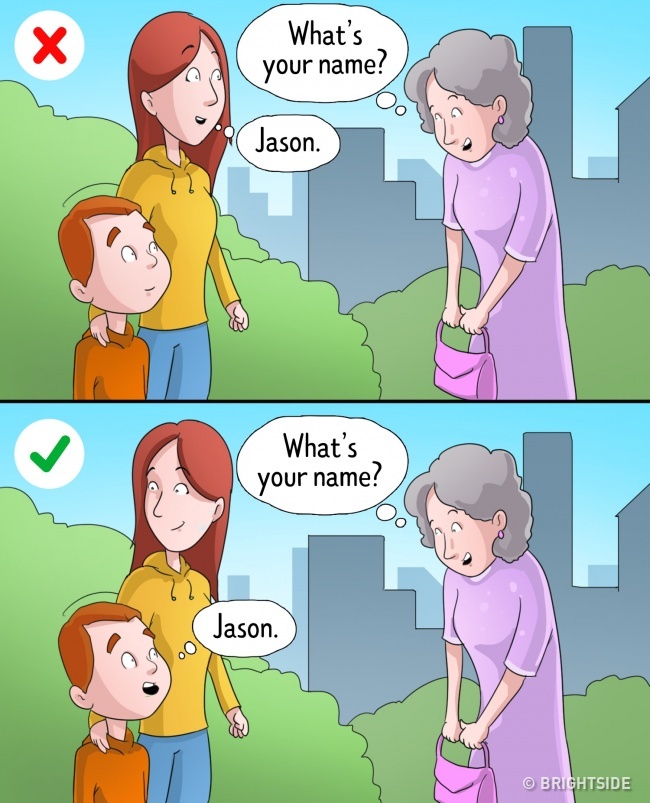 當有人問到小孩是什麼名字時,很多爸媽都會搶先的回答,連小孩回答的機會都沒有,但事實是爸媽是不應該為小孩說話的,要小孩自己說回,而不是依賴爸媽去找答案。